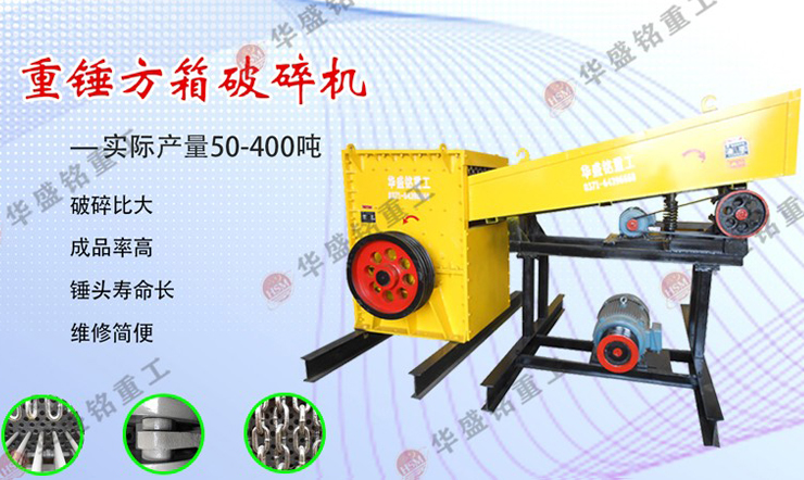 重錘破碎機是我華盛銘重工綜合顎式破碎機、錘式破碎機,集反擊破、蝸牛破等優點與一體的破石機械,也叫箱式重錘破碎機,方箱破碎機,大石直接進破、自動喂料,全自動流水作業,省人省力、高產節能、日產千噸以上,是當前適用的石料設備,深受用戶好評。采用高耐磨材料錘頭、篦板及反擊板,使用壽命更長,成品率高,顆粒狀產品占85%左右,完全符合使用要求,粗、中碎一步到位,工藝流程簡化